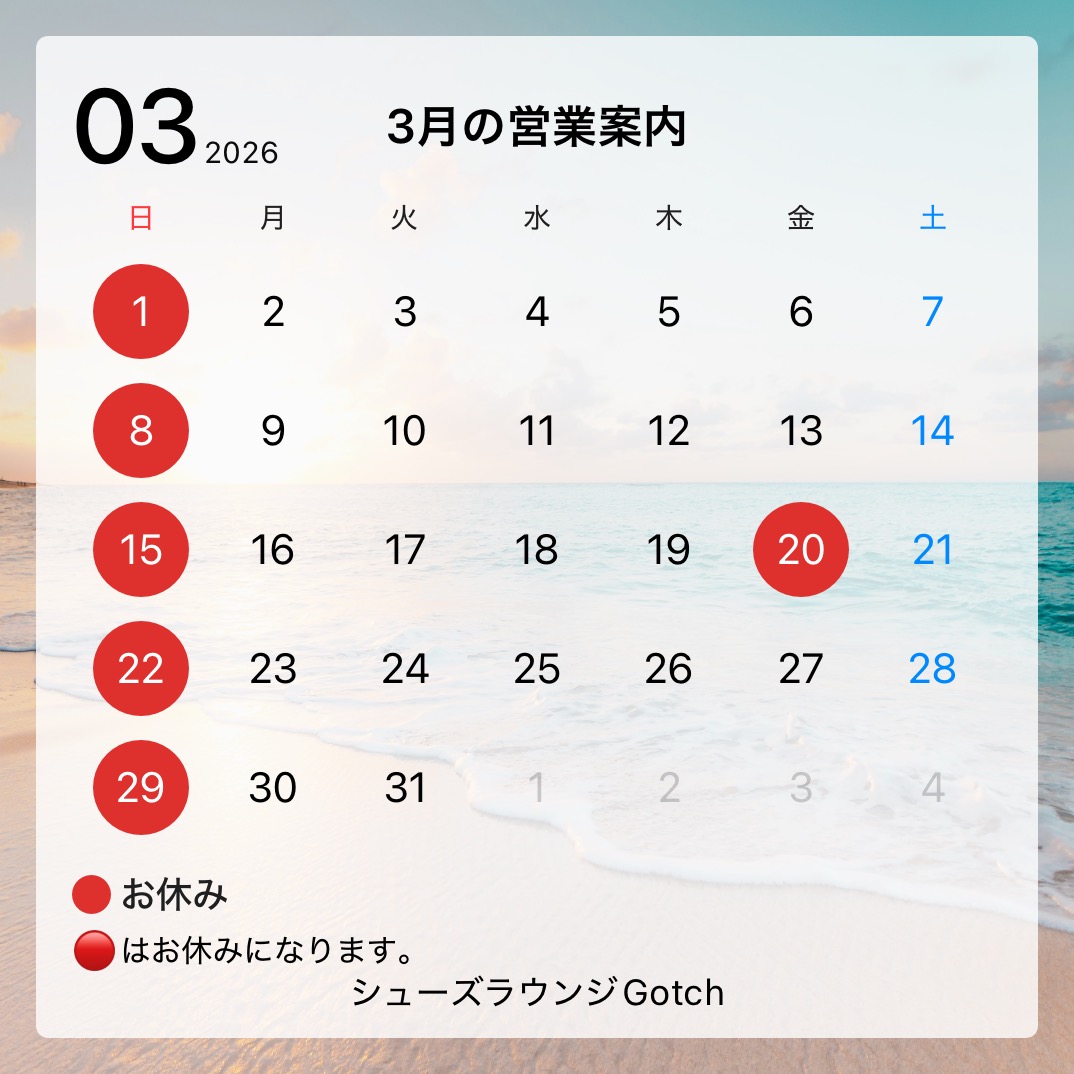 3月の営業カレンダー。