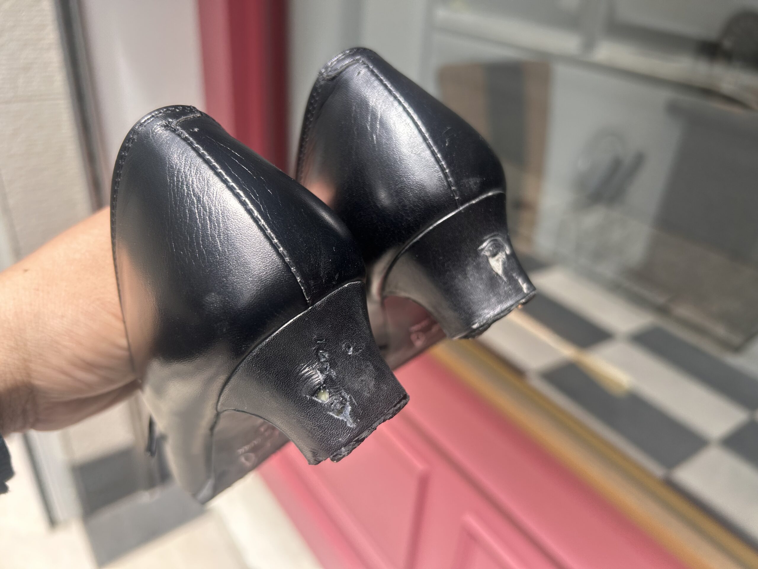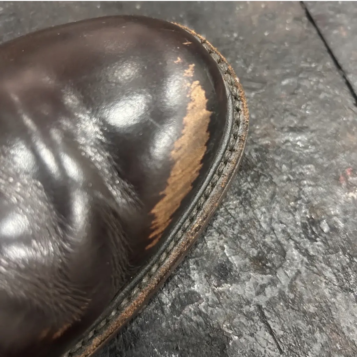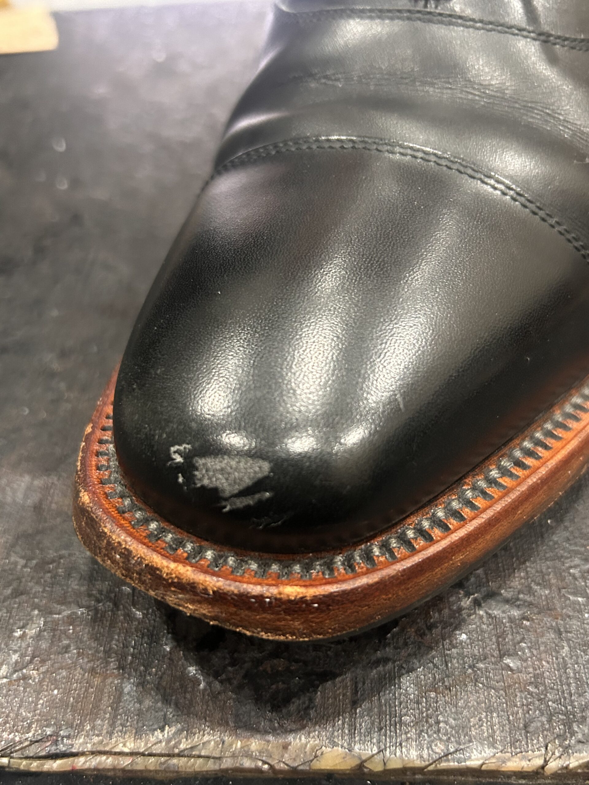 スコッチグレインつま先のキズ補修。