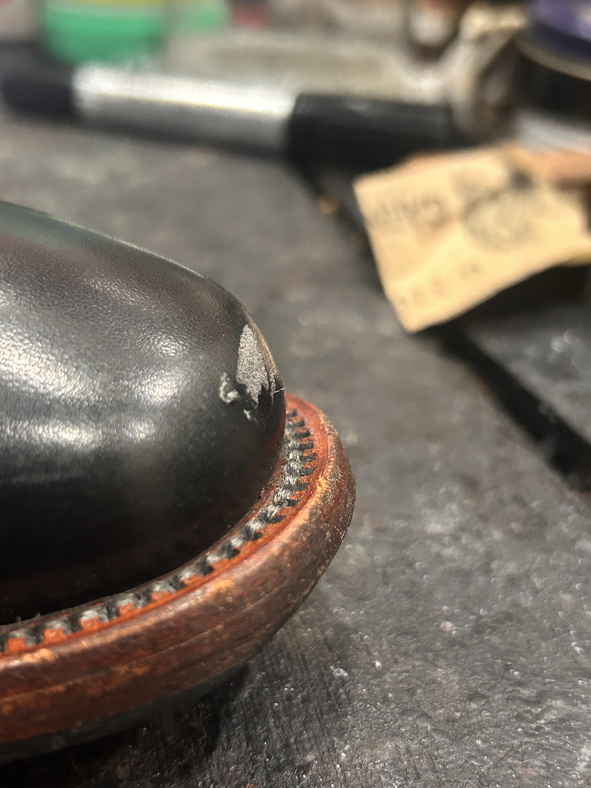 どんな素材で盛るかはその時次第、革の削り粉