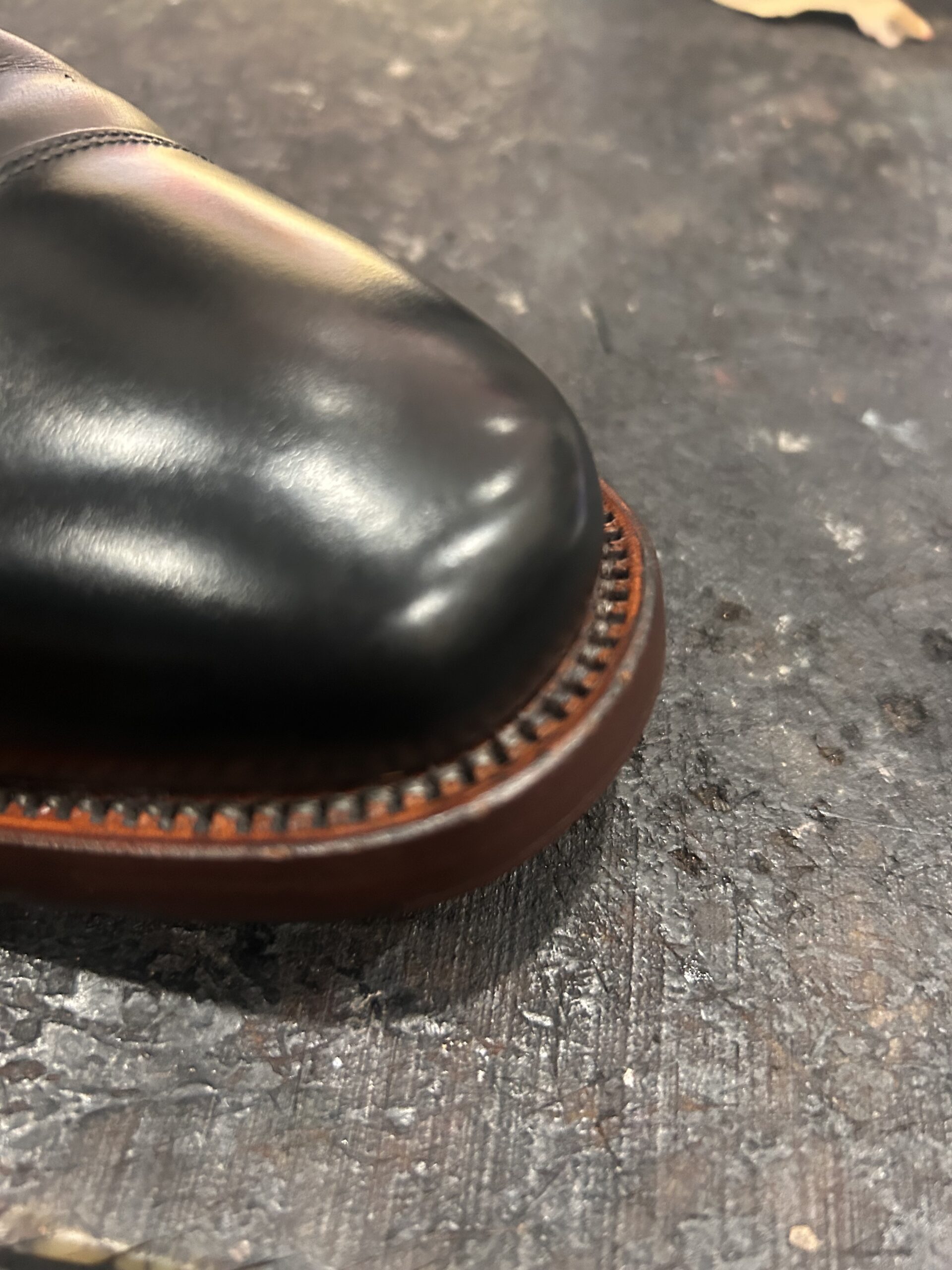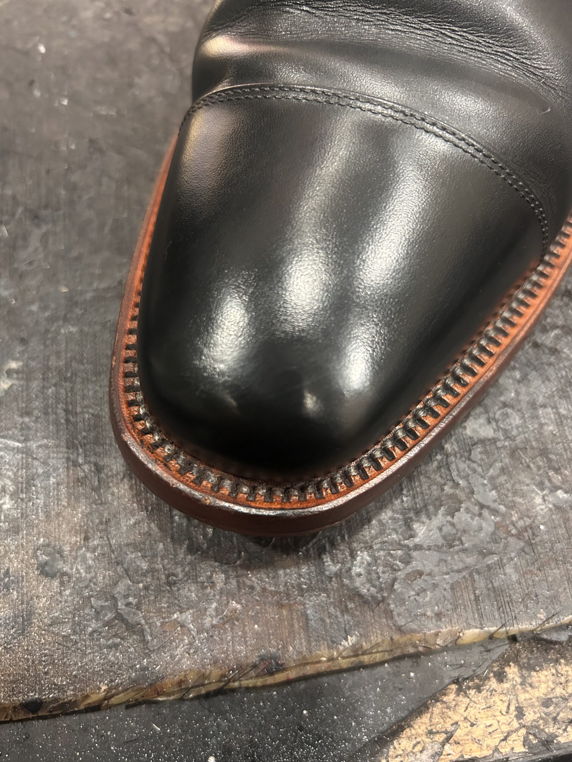 スコッチグレインつま先のキズ補修。