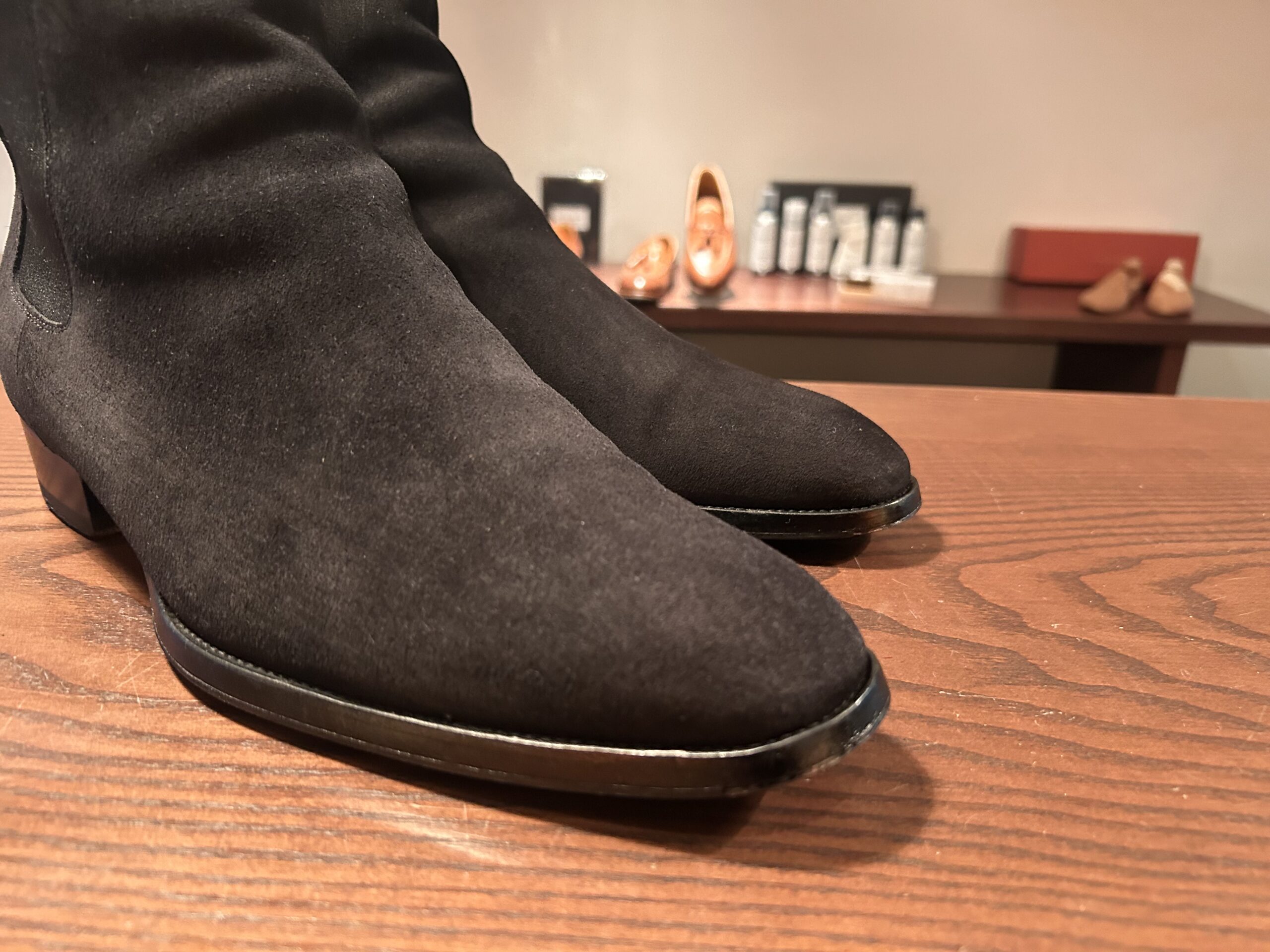 濃い色のスエード靴はある程度